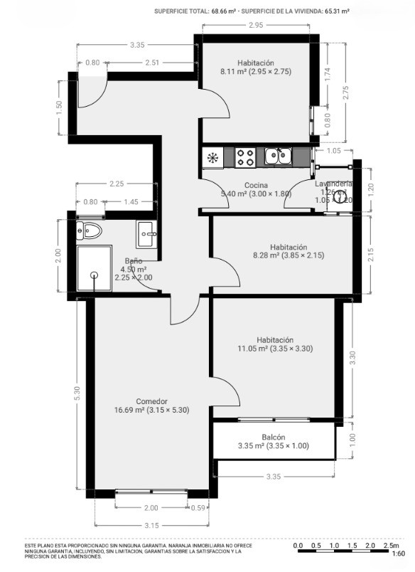 - Dimensiones: 75m²