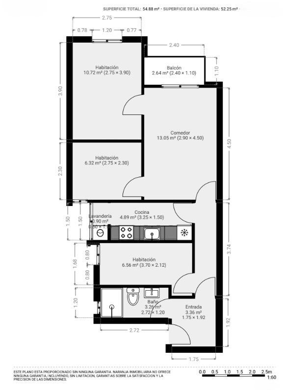- Dimensiones: 61m²